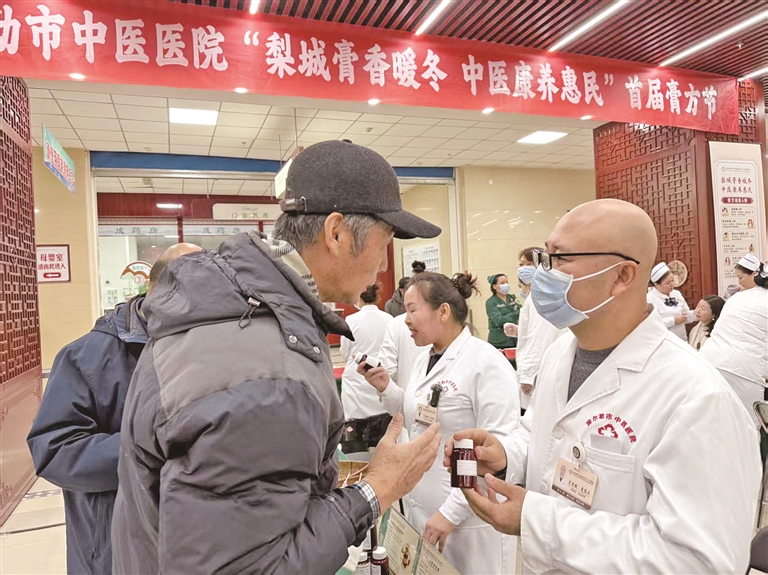 首届膏方节以“梨城膏香暖冬 中医康养惠民”为主题,专家义诊、药膳品尝、中医药膏方制作、特色疗法体验等一系列融合传统与创新的中医药项目吸引了众多市民“打卡”体验。