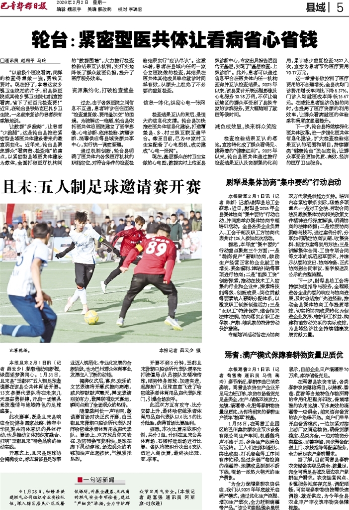 - 轮台:紧密型医共体让看病省心省钱 □通讯员 赵湘平 马玲 “以前换个医院看病,同样的检查得重做一遍,费钱又费时。现在好了,拿着这家乡镇卫生院拍的片子,到县级医院或其他乡镇卫生院也能直接看病,省下了近百元检查费!”近日,