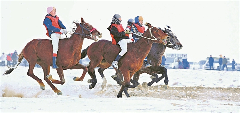 1月25日,福海县举办盛大的群众性赛马活动,为各族群众奉上一场精彩的文体盛宴。活动现场,骑手们策马扬鞭、驰骋赛场,展开速度与力量的激烈角逐,吸引各地群众和游客纷纷到场观赛。据《新疆日报》(阿尔达克·拜斯汗 摄)