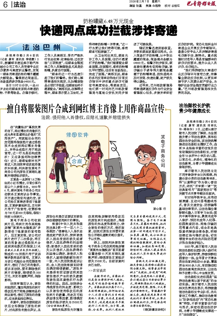- 法治副校长护航青少年健康成长 本报库尔勒2月6日讯 (记者 廖军 通讯员 排丽扎尔·塔依尔) 3日,记者从库尔勒市人民法院了解到,为全面提升青少年法治素养,筑牢校园法治安全防线,该法院统筹推进法治副校长履职工作,选派24名经验