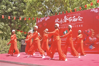 2月7日,在尼日利亚阿布贾中国文化中心举办的2026年“欢乐春节”庙会暨庆祝中国与尼日利亚建交55周年活动上,尼日利亚学生表演中国文化节目。