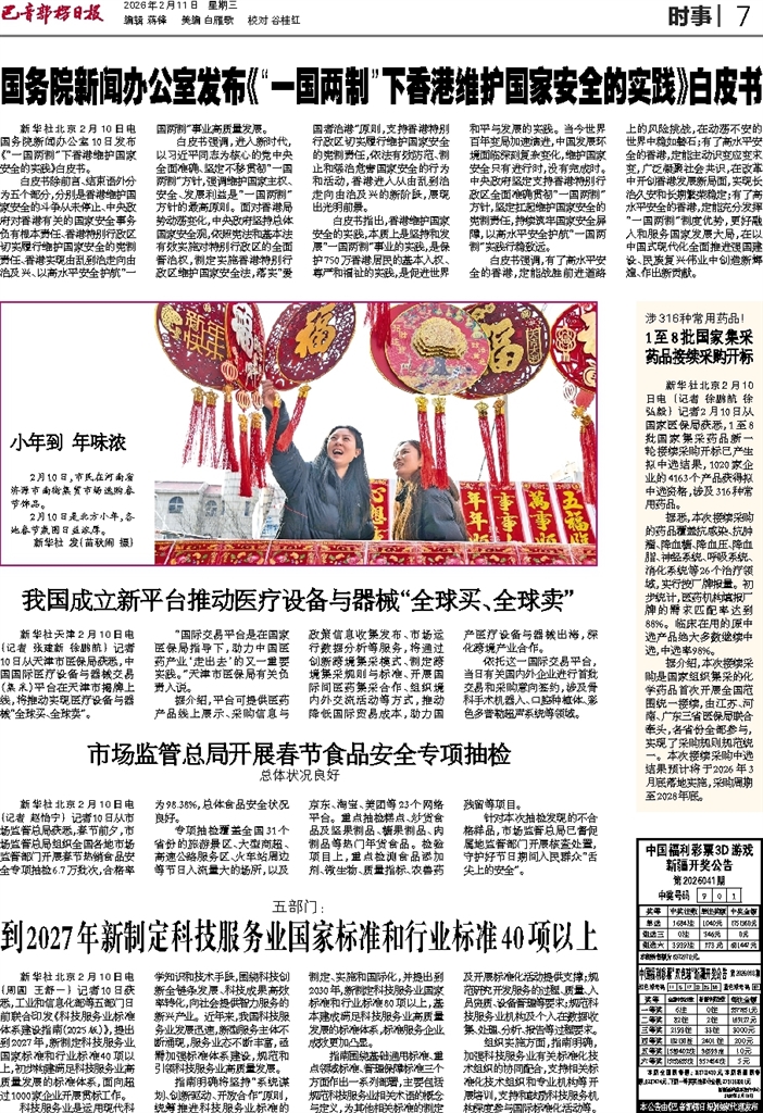 - 到2027年新制定科技服务业国家标准和行业标准40项以上 新华社北京2月10日电(周圆 王舒一) 记者10日获悉,工业和信息化部等五部门日前联合印发《科技服务业标准体系建设指南(2025版)》,提出到2027年,新制定科技服务业国家标准和行业标准40项以