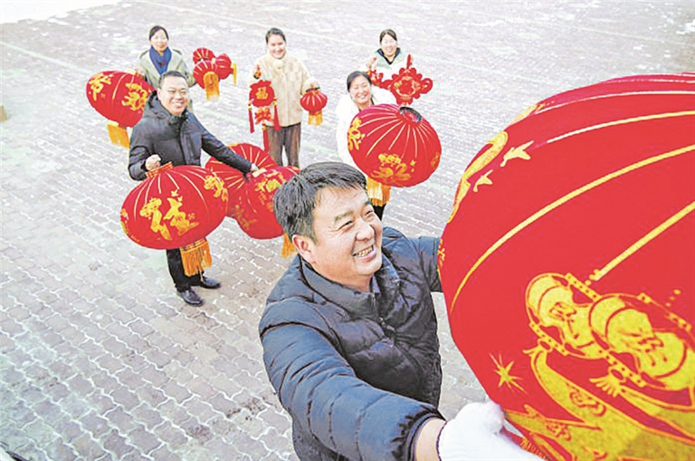 2月9日,党员干部在乌苏市甘河子镇包家庄子村帮村民挂灯笼。临近春节,该市开展“迎新春、进社区、送祝福”活动,营造喜庆祥和的节日氛围。