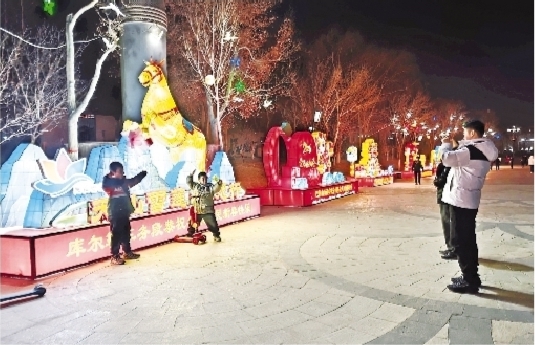 本报库尔勒2月15日讯 (记者 赵爽) 新春将至,库尔勒杜鹃河劳动公园内,马年新春花灯已布置就绪。36组花灯沿河岸错落排布,以马年生肖为核心打造奔马踏春、金马送福等造型,并巧妙融入香梨、天鹅等库尔勒地域元素,搭配新春纳福、阖家团圆的美好寓意,造型鲜活、主题鲜明。市民或游客漫步河畔,既能看天鹅翩跹游弋,又能赏花灯,沉浸式感受“天鹅伴灯影,碧水映流光”的独特新春景致。
