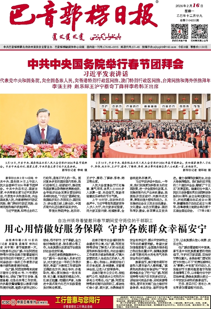 本报库尔勒2月15日讯 (记者 赵富强 袁海军 特约记者 刘宇博) 春节假期第一天,州党委书记任广鹏、州长阿西克特等州领导在库尔勒看望慰问坚守岗位的干部职工,向节日期间奋战在一线的工作者表示诚挚问