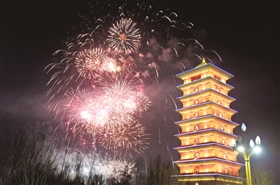 又讯 (记者 陈彦强 通讯员 侯宪伟 杨惠杰 苏比努尔·阿不力米提) 农历除夕夜,轮台县西域都护府历史文化园内灯火璀璨,人声鼎沸,一场盛大烟花秀如期上演。各族群众在绚烂焰火与历史文脉的交相辉映中,共迎马年春节。