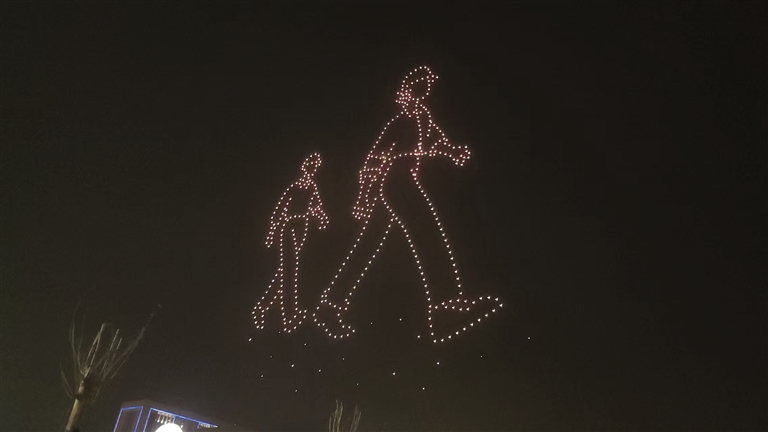 与此同时,一场科技感十足的无人机灯光秀在保利·石油花园小区上空上演。一架架无人机以夜空为幕、以灯光为笔,围绕能源脉络、西气东输、深地先锋等核心主题变换队列,用灵动光影勾勒出能源担当与时代风采,与河畔烟花遥相辉映,传统年味与现代科技完美交融,点亮了整座城市的夜空。