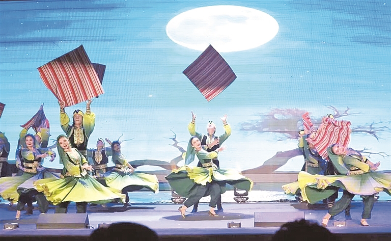 第三篇《生命礼赞·同梦圆》里,《罗布渔歌》还原了罗布人逐水而居的传统生活,《帕拉孜织恋》《青玉案·元夕》等节目则将罗布民俗与中华优秀传统文化深度融合,生动诠释了“各民族像石榴籽一样紧紧抱在一起”的时代内涵。
