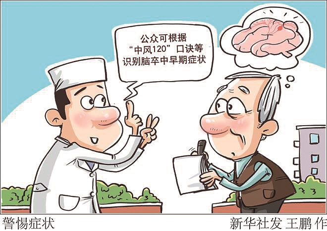 那么,如何及时发现脑卒中?如果身边的人出现以下症状,要高度警惕脑卒中的发生:突然出现一侧头面部、手脚麻木;突然走路不稳,感觉眩晕;突然视物模糊;突然说话不清楚、流口水、口角歪斜;突然剧头痛;突然出现一侧肢体无力等。