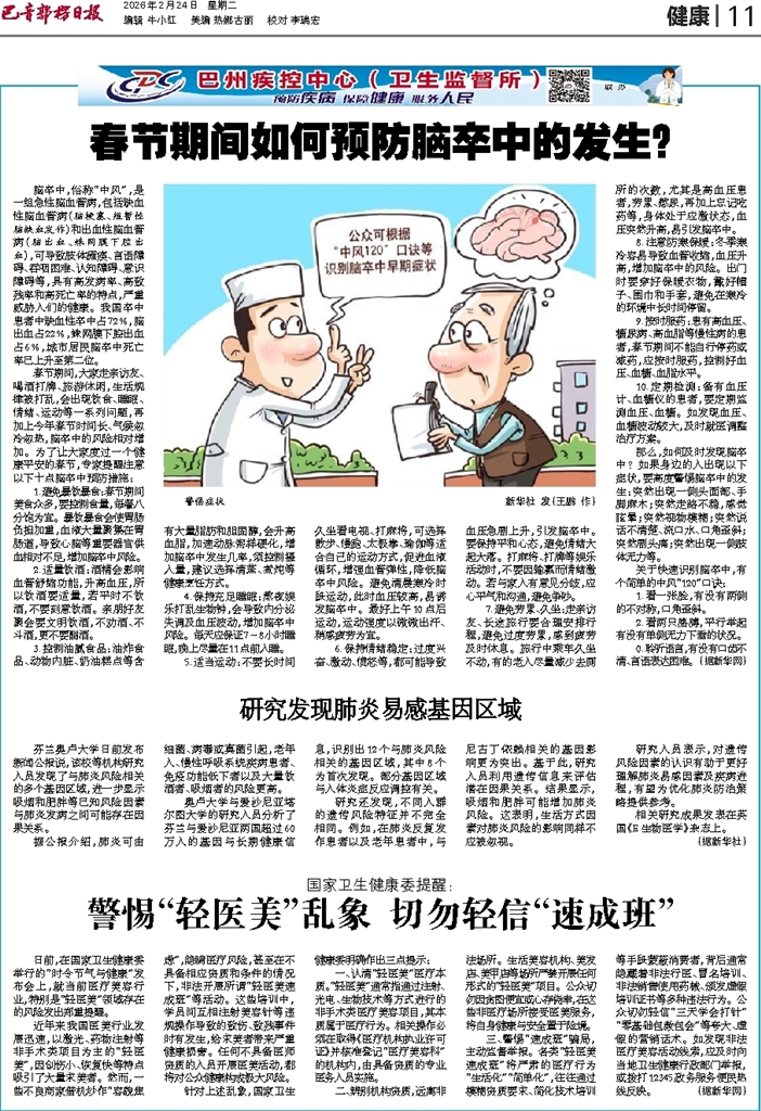 - 春节期间如何预防脑卒中的发生? 脑卒中,俗称“中风”,是一组急性脑血管病,包括缺血性脑血管病(脑梗塞、短暂性脑缺血发作)和出血性脑血管病(脑出血、蛛网膜下腔出血),可导致肢体瘫痪、言语障碍、吞咽困难、认知障碍、意识障碍等,具有高