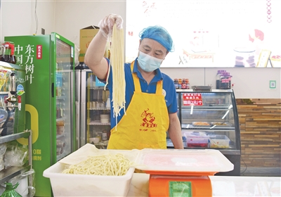 汤在炉子上咕嘟着。孙宗林揭开锅盖,“我的牛肉汤要熬制4小时以上,调料包是经过十几年的摸索,根据当地人的口味配出来的。”他说,手擀面味道好是一方面,更重要的是营养健康 。