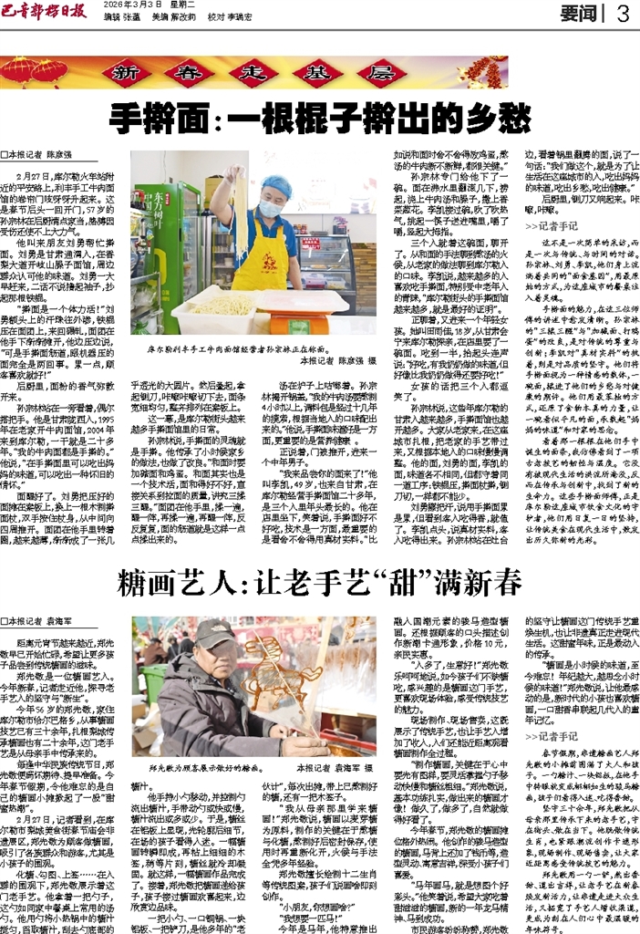 □本报记者 陈彦强 2月27日,库尔勒火车站附近的平安路上,利丰手工牛肉面馆的卷帘门吱呀呀升起来。这是春节后头一回开门,57岁的孙宗林在后厨清点家当,胳膊因受伤还使不上大力气。 他