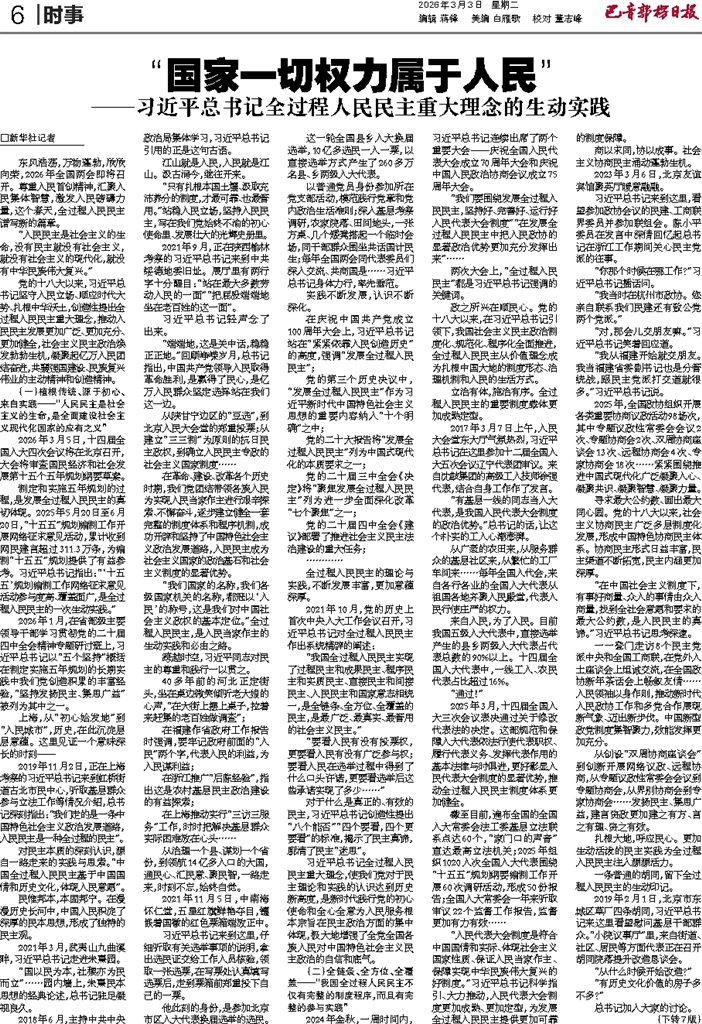 □新华社记者 东风浩荡,万物蓬勃,欣欣向荣,2026年全国两会即将召开。尊重人民首创精神,汇聚人民集体智慧,激发人民磅礴力量,这个春天,全过程人民民主谱写新的篇章。 “人民民主是社