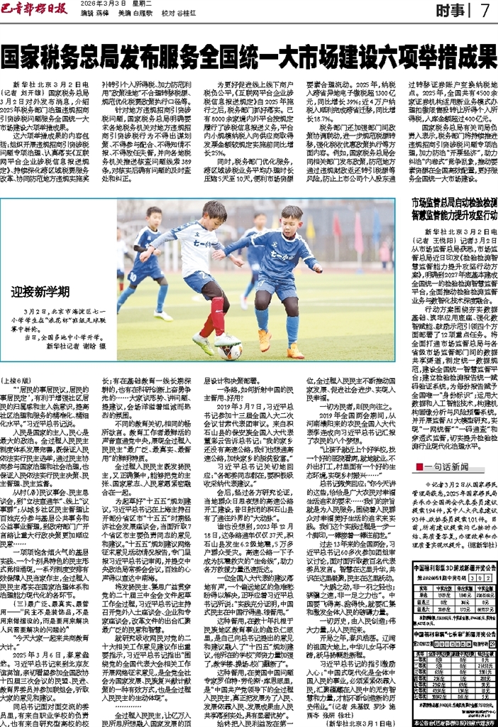 - 市场监管总局启动检验检测智慧监管能力提升攻坚行动 新华社北京3月2日电 (记者 王悦阳) 记者3月2日从市场监管总局获悉,市场监管总局近日印发《检验检测智慧监管能力提升攻坚行动方案》,明确到2027年底基本建成全国统一的检验检测智慧监管平台,全面