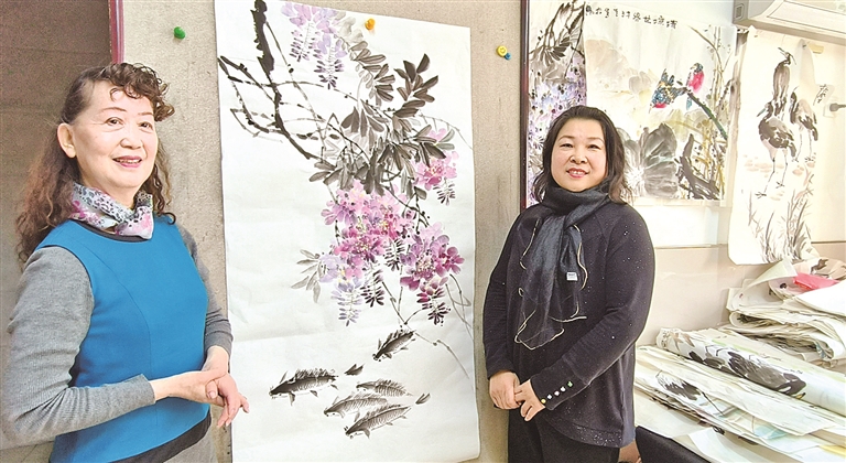 3月7日,在“三八”国际劳动妇女节来临之际,巴州两位女画家刘新艺、马玉华相约画室,凝神落笔、默契配合,共同完成了一幅紫藤花与鱼儿的国画作品,献给广大女性朋友,用艺术传递温暖,用匠心致敬巾帼力量。