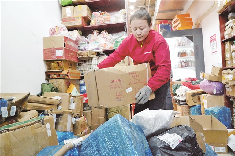 记者走进巴州申通货物运输代理服务有限公司,快递员周璇在麻利地扫码、分装快件。从业11年,日复一日的弯腰、扫码、码放,她的指尖磨出了厚厚的老茧。“我每天主要负责分拣货物,再将分拣好的货物送到库尔勒市团结路片区快递驿站,一年四季风雨无阻。”周璇说。