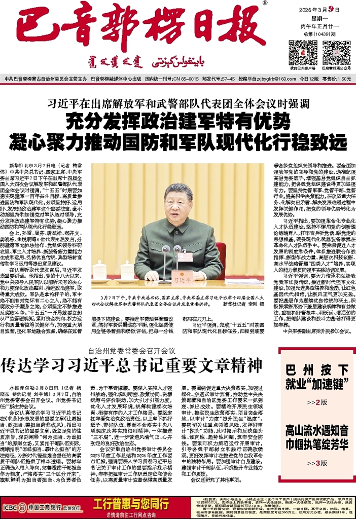 - 传达学习习近平总书记重要文章精神 本报库尔勒3月8日讯 (记者 杨晓东 特约记者 刘宇博) 3月7日,自治州党委常委会召开会议。州党委书记任广鹏主持会议。 会议认真传达学习习近平总书记在《求是》杂志发表的重要文章《让愿担当、敢