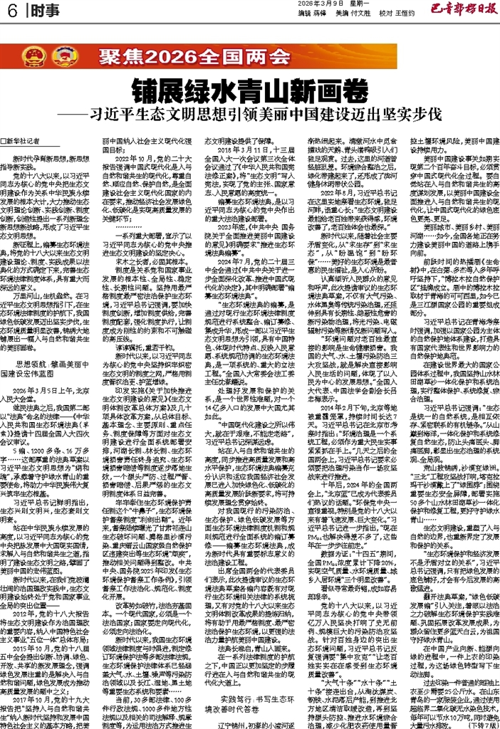 □新华社记者 新时代孕育新思想,新思想指导新实践。 党的十八大以来,以习近平同志为核心的党中央把生态文明建设作为关系中华民族永续发展的根本大计,大力推动生态文明理论创新、实践创新、