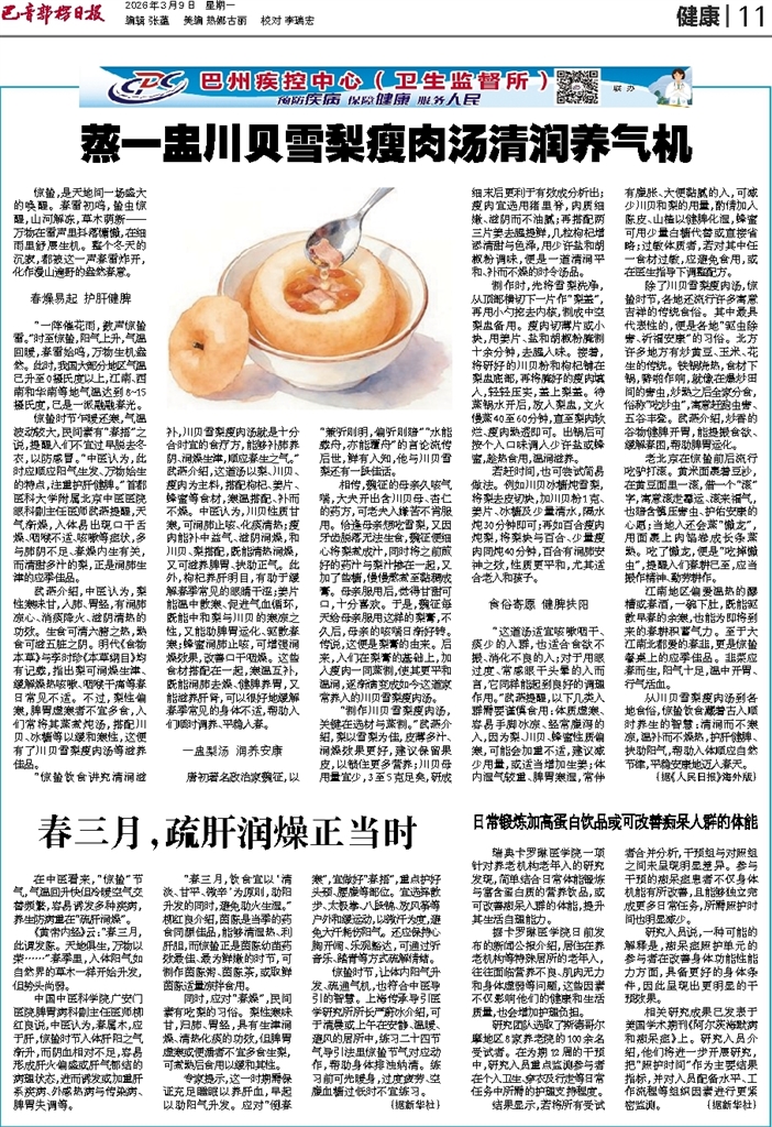 - 蒸一盅川贝雪梨瘦肉汤清润养气机 惊蛰,是天地间一场盛大的唤醒。春雷初鸣,蛰虫惊醒,山河解冻,草木萌新——万物在雷声里抖落慵懒,在细雨里舒展生机。整个冬天的沉寂,都被这一声春雷炸开,化作漫山遍野的盎然春意。 春燥易起 护肝健脾