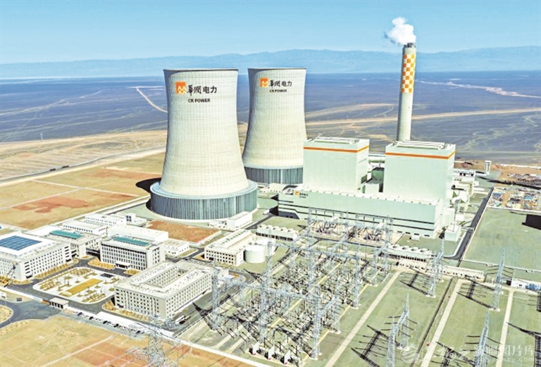 华润电力重能新疆公司2×100万千瓦煤电项目全景(3月31日无人机摄)。