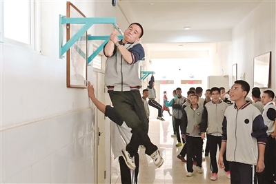 本报库尔勒4月6日讯 (记者 周海霞 通讯员 马悦 冯思远) 2日,下课铃响,库尔勒市第二十中学的教学楼走廊瞬间热闹起来:学生们涌出教室,围聚在墙边单杠前,或奋力做引体向上,或专注悬垂吊臂,周围不时响起阵阵加油助威声……原本静谧的走廊,摇身一变成为充满活力的“健身区”。