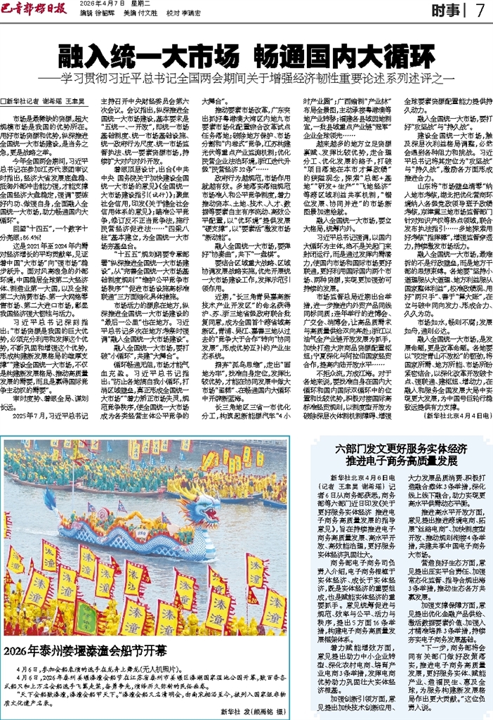 - 六部门发文更好服务实体经济 推进电子商务高质量发展 新华社北京4月6日电(记者 王聿昊 谢希瑶) 记者6日从商务部获悉,商务部等六部门近日印发《关于更好服务实体经济 推进电子商务高质量发展的指导意见》,旨在持续推进电子商务高质量发展、高水平开放、高