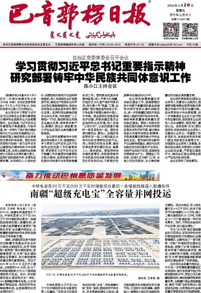 - 南疆“超级充电宝”全容量并网投运 本报若羌4月9日讯 (通讯员 王中信 李远宬) 7日11时45分,随着电网调度指令下达,中绿电若羌50万千瓦/200万千瓦时储能项目最后一条储能线路顺利接入新疆电网,标志着这座南疆地区重要的“超级