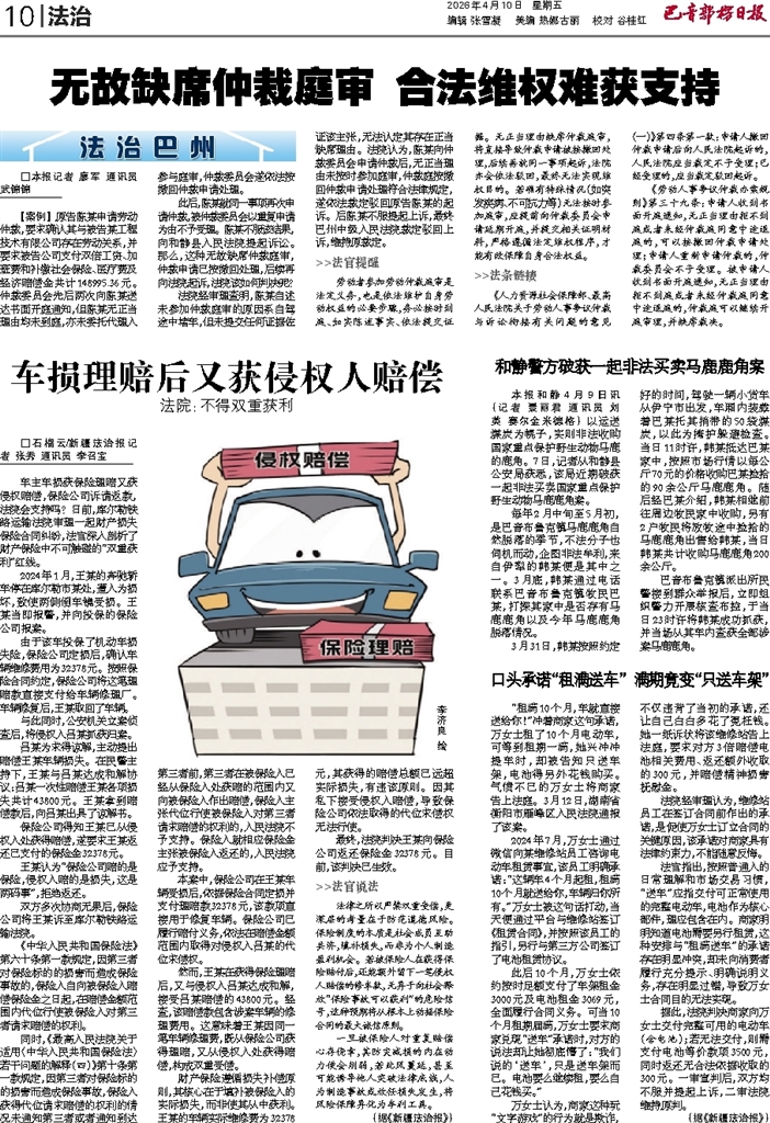 - 车损理赔后又获侵权人赔偿 □石榴云/新疆法治报记者 张秀 通讯员 李召宝 车主车损获保险理赔又获侵权赔偿,保险公司诉请返款,法院会支持吗?日前,库尔勒铁路运输法院审理一起财产损失保险合同纠纷,法官深入剖析了财产保