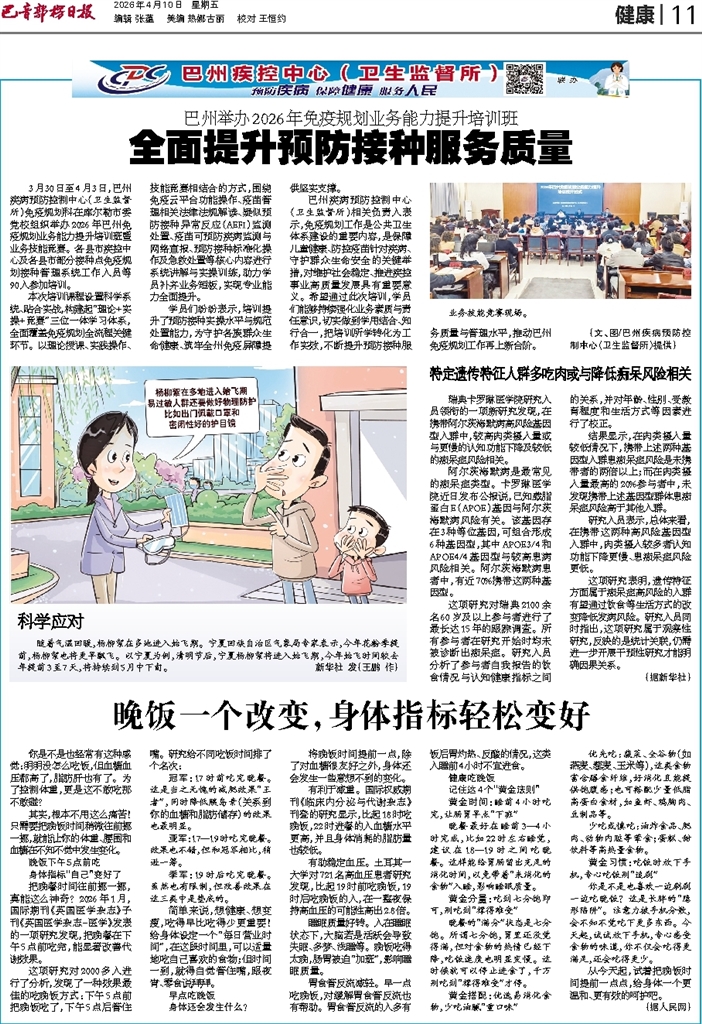 - 全面提升预防接种服务质量 3月30日至4月3日,巴州疾病预防控制中心(卫生监督所)免疫规划科在库尔勒市委党校组织举办2026年巴州免疫规划业务能力提升培训班暨业务技能竞赛。各县市疾控中心及各县市部分接种点免疫规划接种管理系