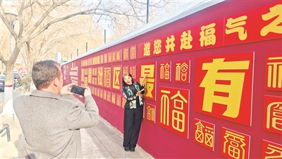 市民李萱说:“今天带小朋友们过来打卡拍照,网红墙很有过年的氛围,小朋友们很喜欢。”